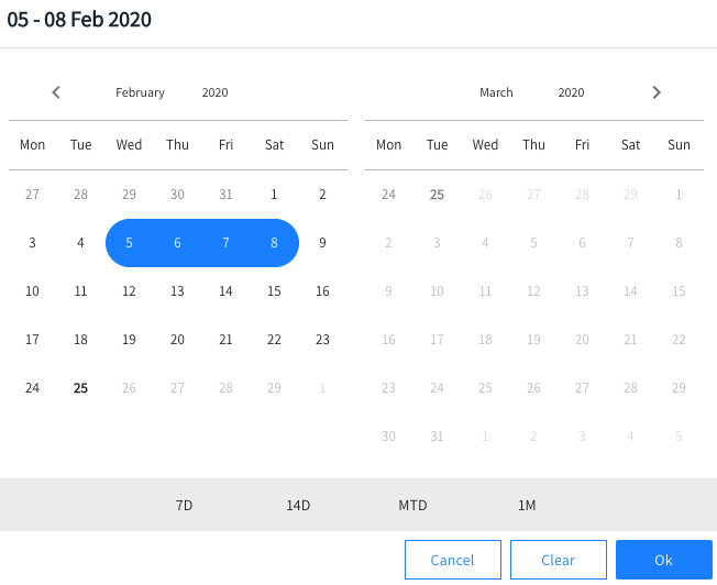 Click on Date to open the calendar. You can choose from the following time periods: